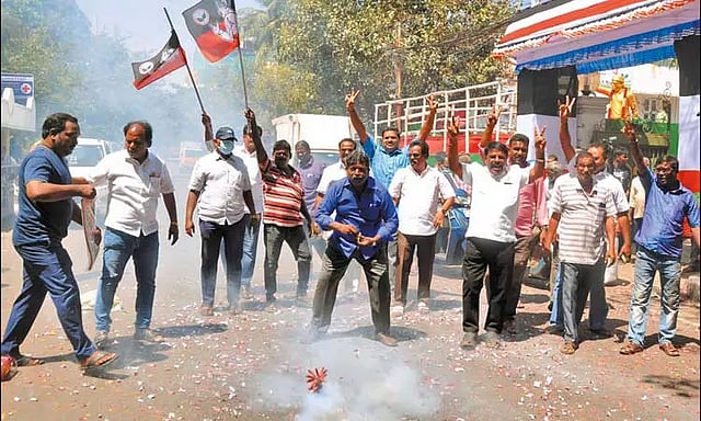 பின்னர் தொண்டர்கள் பலர் லட்டு, ஜாங்கிரி போன்ற இனிப்புகளை பொதுமக்களுக்கு வழங்கி தங்களது மகிழ்ச்சியை பகிர்ந்து கொண்டனர்.