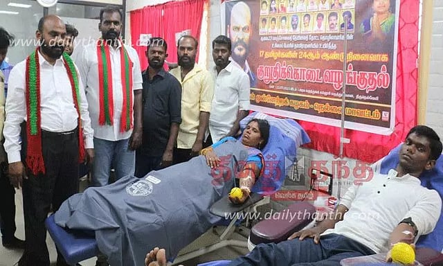 நெல்லை மாவட்ட தலைவர் கண்மணி மாவீரன் தலைமையில் பலர் ரத்ததானம் செய்தனர். நிகழ்ச்சியில் மாநகர் மாவட்ட செயலாளர் துரைப்பாண்டியன், இளைஞர் அணி செயலாளர் சிவந்தி முத்துப்பாண்டி, இளைஞர் அணி தலைவர் மணிமாறன், மேலப்பாளையம் பகுதி தலைவர் டிக்முத்து, இணை செயலாளர் முருகேஷ், இளைஞர் அணி பகுதி செயலாளர் உலகநாதன் மற்றும் சிந்து, பேராச்சி, காட்டு ராணி உள்பட பலர் கலந்து கொண்டனர்.
