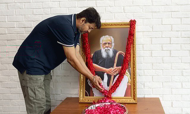 பெரியாரின் 51-வது நினைவு நாளையொட்டி பனையூரில் உள்ள தமிழக வெற்றிக் கழக அலுவலகத்தில் பெரியார் உருவப்படத்திற்கு மலர்தூவி விஜய் மரியாதை செலுத்தினார்.