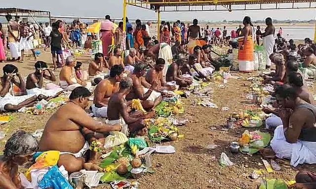 இந்நிலையில் மகாளய அமாவாசையை முன்னிட்டு முன்னோர்களுக்கு தர்ப்பணம் கொடுப்பதற்காக பொதுமக்கள் நீர்நிலைகளில் குவிந்தனர். திருச்சி, ராமேஸ்வரம் உள்ளிட்ட மாவட்டங்களில் உள்ள நீர்நிலைகளில் குவிந்த பொதுமக்கள், தங்களது முன்னோர்களுக்கு தர்ப்பணம் கொடுத்தனர்.