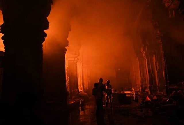 மதுரை மீனாட்சி அம்மன் கோவிலில் கடந்த சில தினங்களுக்கு முன்பு பெரிய தீ விபத்து ஏற்பட்டது. இந்த தீ விபத்தில் கோவில் வளாகத்தில் அமைக் கப்பட்டிருந்த 30-க்கும் மேற்பட்ட கடைகள் எரிந்து சாம்பலாகின.
