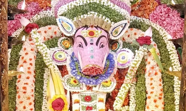 தஞ்சை பெரியகோவிலில் வராகிஅம்மன் தனி சன்னதியில் எழுந்தருளி அருள்பாலித்து வருகிறார். வராகிஅம்மனுக்கு ஆண்டுதோறும் ஆஷாட நவராத்திரி விழா கொண்டாடப்படும். இதில் அம்மனுக்கு நாள்தோறும் அபிஷேகமும், அலங்காரமும் நடைபெறும். அதன்படி இந்த ஆண்டு ஆஷாட நவராத்திரி விழா கடந்த 18-ந் தேதி கணபதி ஹோமத்துடன் தொடங்கியது. தொடர்ந்து வராகிஅம்மனுக்கு இனிப்பு, மஞ்சள், குங்குமம், சந்தனம், தேங்காய்பூ, மாதுளை, நவதானியம், வெண்ணெய், பழங்கள், காய்கறிகள் ஆகியவற்றால் அலங்காரம் செய்யப்பட்டு தீபாராதனை நடைபெற்றது. இறுதிநாளான நேற்று மாலை வராகி அம்மனுக்கு புஷ்பஅலங்காரம் செய்யப்பட்டிருந்தது.தொடர்ந்து இரவு மேளதாளம் முழங்க, பெண்களின் கோலாட்டத்துடன் புஷ்பஅலங்காரத்தில் வராகிஅம்மன் புறப்பாடு நடைபெற்றது. முளைப்பாரி வைக்கப்பட்ட தள்ளுவண்டி முன்னே செல்ல சாமி உருவப்பொம்மைகள் பின்தொடர, புஷ்பஅலங்காரத்தில் வராகிஅம்மன் தஞ்சை மேலவீதி, வடக்குவீதி, கீழவீதி, தெற்குவீதி ஆகிய 4 ராஜவீதிகளில் உலா வந்து பக்தர்களுக்கு அருள்பாலித்தார். பக்தர்கள் ஏராளமானோர் வந்து சாமி தரிசனம் செய்தனர்.