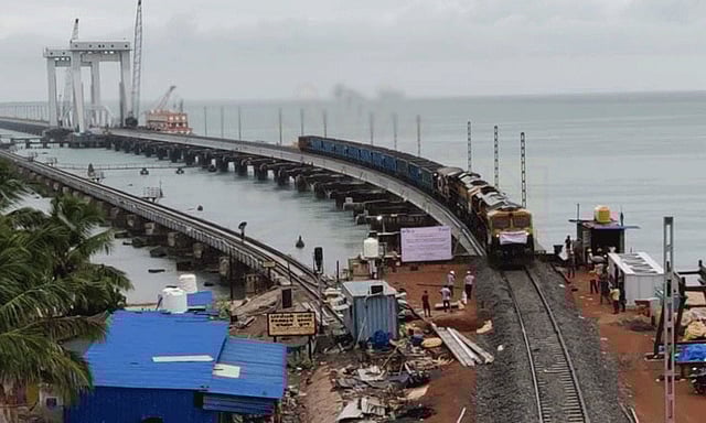 ராமேஸ்வரம் பாம்பன் கடலில் ரூ.545 கோடியில் புதிதாக ரெயில் பாலம் கட்டப்பட்டு வருகிறது. இந்த பாலத்தின் இறுதி கட்டப் பணியாக மையப் பகுதியில் உள்ள தூக்கு பாலத்தை முழுமையாக திறந்து மூடுவதற்கான பணிகள் தீவிரமாக நடைபெற்று வருகின்றன.