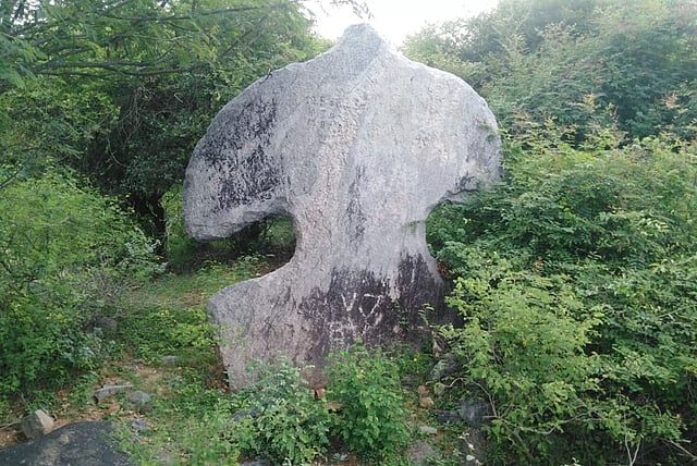இந்த விசிறிப்பாறையின் வயது 5,000 ஆண்டுகள் இருக்கலாம் என ஆய்வு சொல்கிறது. அந்தளவுக்கு வரலாற்று தொன்மை வாய்ந்த இந்த விசிறிப்பாறை தற்போது புதருக்குள் சிக்கி இருக்குமிடம் தெரியாமல் மெல்ல, மெல்ல அழிந்து வருகிறது.குறிப்பாக இந்த விசிறிப்பாறையின் இடது கையில் விரிசல் ஏற்பட்டு எப்போது வேண்டுமானாலும் உடைந்து விழும் அளவுக்கு காணப்படுகிறது. இந்த விசிறிப்பாறை பழமையின் பெருமையை பேசினாலும் தொல்லியல் துறையின் அரவணைப்பு, ஏனோ இன்னமும் இதற்கு கிடைக்கவில்லை என்பதுதான், வேதனையாக உள்ளது. இந்த விசிறிப்பாறைக்கு மிக அருகிலேயே மிகப்பெரிய மலையின் அடிவாரத்தில் மிகவும் பழமைவாய்ந்த ஆத்திலி அம்மன் கோவில் உள்ளது.