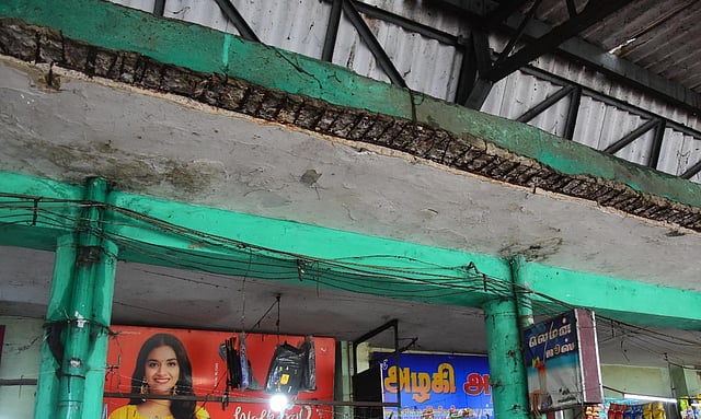 இதனால் பழமையான இந்த பஸ் நிலைய கட்டிடத்தை இடித்து விட்டு புதிய கட்டிடம் கட்டப்பட உள்ளது. இந்த நிலையில் நேற்று நள்ளிரவு புதுக்கோட்டை புதிய பஸ் நிலையத்தில் காரைக்குடி பஸ் நிறுத்த பகுதியில் மேற்கூரையில் கான்கிரீட் சிமெண்டு பூச்சுகள் பெயர்ந்து சிறிது விழுந்தது.