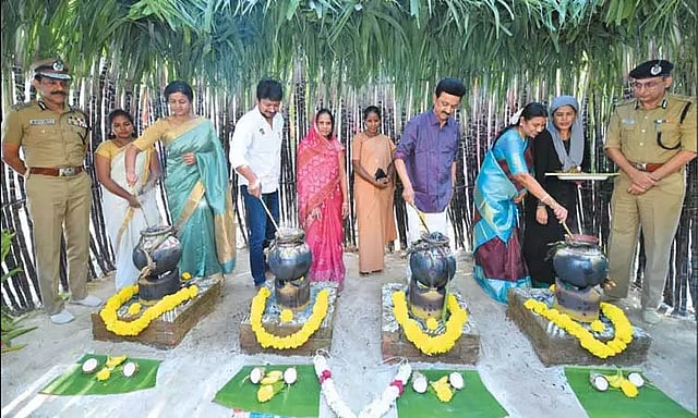 பொங்கல் பண்டிகையையொட்டி, சென்னை கொண்டித்தோப்பில் உள்ள போலீசார் குடியிருப்பில் நேற்று முன்தினம் நடந்த பொங்கல் விழாவில் முதல்-அமைச்சர் மு.க.ஸ்டாலின் கலந்துகொண்டார். அவரது மனைவி துர்கா ஸ்டாலின், மகனும், அமைச்சருமான உதயநிதி ஸ்டாலின், மருமகள் கிருத்திகா உள்ளிட்டோரும் கலந்துகொண்டனர்.