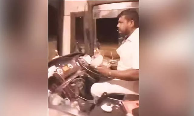 மதுரை மாட்டுத்தாவணியில் இருந்து 40 பயணிகளுடன் ஆம்னி பஸ் ஒன்று சென்னைக்கு புறப்பட்டது. சிறிது தூரம் வந்த நிலையில் ஆம்னி பஸ்சை ஓட்டிச்சென்ற டிரைவர், பஸ்சை ஓட்டிக்கொண்டே, ஸ்டியரிங் நடுவில் உணவு பார்சலை வைத்து சாப்பிட தொடங்கினார். ஆபத்தான முறையில் பஸ்சை இயக்கிய டிரைவரை பார்த்த பயணிகள் அதிர்ச்சி அடைந்தனர்.