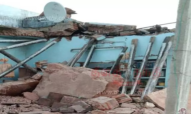 இதில் வீட்டின் மேற்கூரை மற்றும் சுவர் இடிந்து தரைமட்டமானது. இதில் முத்துக்குமார் பலத்த காயம் அடைந்தார்.