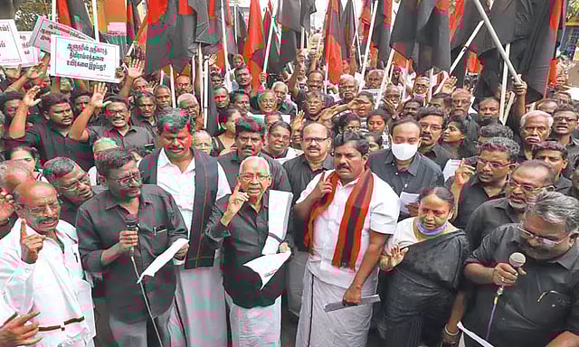 ஆன்லைன் ரம்மி தடை மசோதாவுக்கு கவர்னர் ஒப்புதல் அளிக்க வலியுறுத்தி சென்னையில் திராவிடர் கழகம் சார்பில் ஆர்ப்பாட்டம் நடைபெற்றது. பனகல் மாளிகை அருகே நடைபெற்ற ஆர்ப்பாட்டத்துக்கு திராவிடர் கழகத்தலைவர் கி.வீரமணி தலைமை தாங்கினார்.