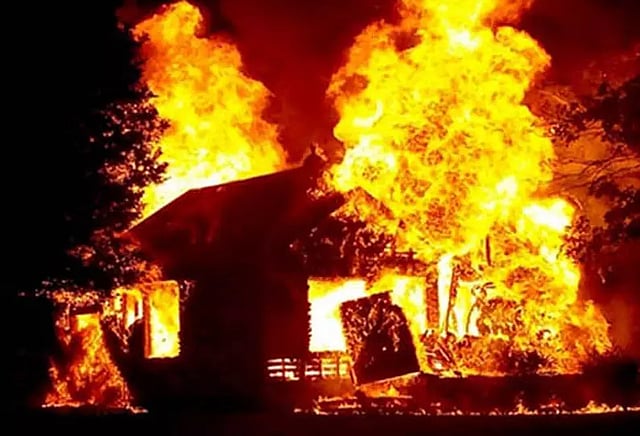 பரமத்திவேலூர் தாலுகா, பாண்டமங்கலம் அருகே உள்ள வேலாக்கவுண்டம்பாளையம் பகுதியை சேர்ந்தவர் பாலு (வயது 37). இவரது மகன் கவின் (28) ராணுவ வீரர். இவர் குடும்பத்துடன் அப்பகுதியில் உள்ள வீட்டில் வசித்து வருகிறார். இந்நிலையில் நேற்று முன்தினம் மதியம் அவரது வீட்டில் இருந்த அறையில் மின் கசிவின் காரணமாக திடீரென தீப்பிடித்து எரிய ஆரம்பித்தது. இதைப்பார்த்த அக்கம் பக்கத்தினர் தீயை அணைக்க முயற்சி செய்தனர். இருப்பினும் தீயை அணைக்க முடியவில்லை. இதுகுறித்து வேலாயுதம்பாளையம் தீயணைப்பு துறையினருக்கு தகவல் தெரிவித்தனர். தகவல் அறிந்து அங்கு வந்த தீயணைப்பு துறையினர் வீட்டில் பற்றி எரிந்த தீயை அணைத்து மேலும் தீ பரவாமல் தடுத்தனர். அதனால் பெரும் தீ விபத்து தவிர்க்கப்பட்டது. இருப்பினும் வீட்டில் இருந்த 2 இருசக்கர வாகனங்கள், துணிமணிகள், மளிகை பொருட்கள் மற்றும் ஒரு சிலிண்டர் உள்பட ரூ.1 லட்சம் மதிப்புள்ள பொருட்கள் முற்றிலும் எரிந்து சேதமாயின. தீ விபத்து சம்பவம் குறித்து பரமத்திவேலூர் போலீசார் விசாரணை நடத்தி வருகின்றனர்.