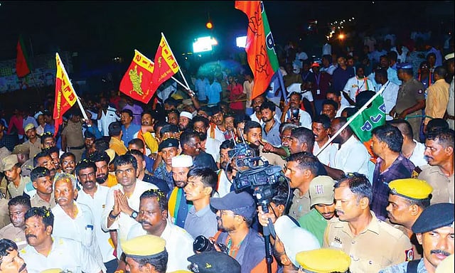 சுட்டெரிக்கும் வெயிலையும் பொருட்படுத்தாமல் என் முன்பாக தாய்மார்கள், முதியவர்கள், பெண்கள் நின்று கொண்டிருக்கிறீர்கள். நீங்கள் உள்பட பொதுமக்கள் மனதில், தமிழகத்தில் ஆட்சி மாற்றம் ஏற்பட வேண்டும் என்ற எண்ணம் பிரதிபலிக்கிறது. ஒரே ஒரு குடும்பம் இரும்பு சிறையை போல தமிழகத்தை ஆட்டுவித்து கொண்டிருக்கிறது. ஒரே குடும்பத்தில் இருந்து வருபவர்கள் மட்டும் ஆட்சியாளராக இருப்பதை எப்படி ஏற்றுக்கொள்ள முடியும்.