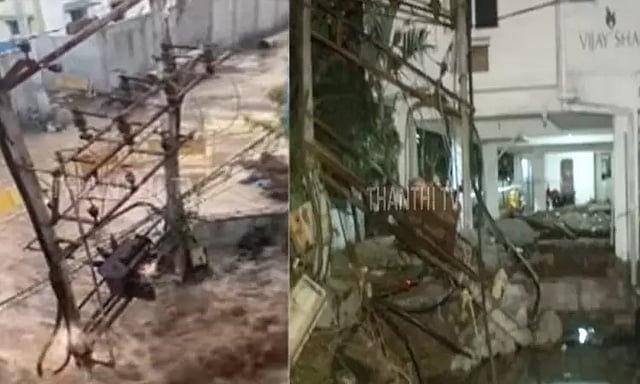 மழைநீர் வடிகால் பணியின்போது, அருகிலுள்ள குழாயின் மீது பொருட்கள் பட்டு உடைந்ததால் நீர் வெளியேறியதாக கூறப்படுகிறது. மேலும் அப்பகுதியில் இருந்த மின்கம்பம், தண்ணீரின் தாக்கத்தினால் சாய்ந்து கிடந்தது.