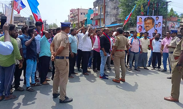 இந்தபகுதியில் சாலையை சரியான முறையில் அளவீடு செய்யாமலும், ஆக்கிரமிப்புகளை அகற்றாமலும் அதிகாரிகள் லஞ்சம் பெற்றுக்கொண்டு சாலையை அகலப்படுத்தாமல் ஒருதலைப்பட்சமாக செயல்பட்டு வருவதாக கூறப்படுகிறது. இதற்கு காரணமான நெடுஞ்சாலைத்துறை அதிகாரிகளை கண்டித்து விடுதலை சிறுத்தைகள் கட்சியின் சார்பில் மாநில வக்கீல் பிரிவு துணை செயலாளர் குருமூர்த்தி தலைமையில் 100-க்கும் மேற்பட்டோர் கடலூர்-நெல்லிக்குப்பம் சாலையில் அண்ணா சிலை முன்பு திடீர் சாலை மறியல் போராட்டத்தில் ஈடுபட்டனர். அப்போது அவர்கள் நெடுஞ்சாலைத்துறை அதிகாரிகளை கண்டித்து கோஷம் எழுப்பினா. இதனால் அங்கு போக்குவரத்து பாதிப்பு ஏற்பட்டது. இதுபற்றிய தகவல் அறிந்த நெல்லிக்குப்பம் போலீஸ் இன்ஸ்பெக்டர் சீனிவாசன் தலைமையில் போலீசார் சம்பவ இடத்துக்கு விரைந்து சென்று சாலை மறியலில் ஈடுபட்டவர்களிடம் பேச்சுவார்த்தை நடத்தி உரிய நடவடிக்கை எடுப்பதாக தெரிவித்தனர். அப்போது சாலை விரிவாக்க பணிகளையும், ஆக்கிரமிப்புகளையும் சரியான முறையில் செய்யவில்லை என்றால் போராட்டம் தொடரும் என விடுதை சிறுத்தைகள் கட்சியினர் தெரிவித்தனர். பின்னர் அவர்கள் அங்கிருந்து கலைந்து சென்றனர். இதனால் கடலூர்- நெல்லிக்குப்பம் சாலையில் சுமார் 20 நிமிடம் போக்குவரத்து பாதிப்பு ஏற்பட்டு பரபரப்பாக காணப்பட்டது.