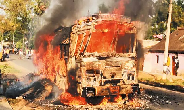 திருவள்ளுவர் மாவட்டம் பள்ளிப்பட்டு தாலுகா அடுத்த ஆர்.கே.பேட்டை ஊராட்சி ஒன்றியம் சின்ன நாகபூண்டி கிராமம் அருகே அரிசி மூட்டைகளுடன் லாரி ஒன்று நேற்று மாலை சென்று கொண்டிருந்தது. அப்போது திடீரென்று டயர் வெடித்ததில் லாரி தீப்பிடித்துக் கொண்டது. இதனால் லாரியை ஓட்டிச் சென்ற டிரைவர் லாரியை நிறுத்திவிட்டு ஓடிவிட்டார். தகவல் கிடைத்து சோளிங்கரிலிருந்து தீயணைப்பு படை வீரர்கள் விரைந்து சென்று தீயை அணைக்க போராடினார்கள். ஆனால் தீ கொழுந்து விட்டு எரிந்ததால் தீயை அணைக்க முடியவில்லை.