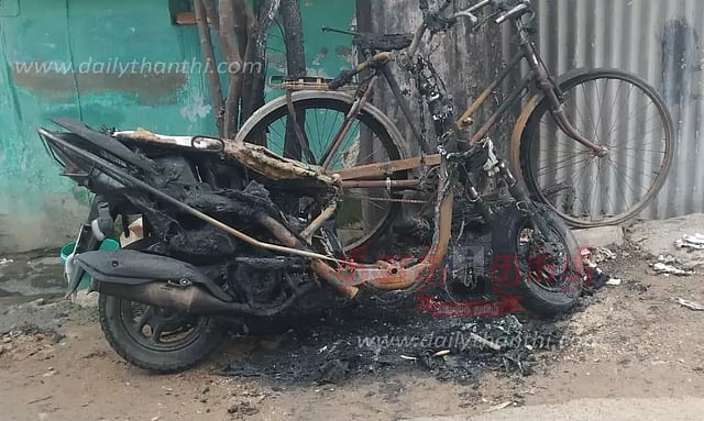 பின்னர் அவர்கள் மொபட்டில் எரிந்த தீயை தண்ணீரை ஊற்றியும், மண்ணை போட்டும் அணைக்க முயன்றனர். ஆனாலும் மொபட் எரிந்து தீக்கிரையானது. அருகில் நின்று கொண்டிருந்த சைக்கிளின் சில பாகங்களும் தீயில் எரிந்தது. இந்த சம்பவம் தொடர்பாக ராஜேஷ்கண்ணன் பெரம்பலூர் போலீஸ் நிலையத்துக்கு தகவல் தெரிவித்தார். அதன்பேரில் சம்பவ இடத்துக்கு போலீசார் சென்று பார்வையிட்டு விசாரணை நடத்தினர். மேலும் மொபட்டிற்கு தீ வைத்து சென்ற மர்மநபர்களை போலீசார் வலைவீசி தேடி வருகின்றனர். இதேபோல் கடந்த 15-ந்தேதி அதிகாலை பெரம்பலூர் சங்குபேட்டை பெரியார் தெருவில் ஒரு வீட்டின் முன்பு நிறுத்தியிருந்த ஸ்கூட்டருக்கு மர்மநபர்கள் தீ வைத்து எரித்து சென்றனர் என்பது குறிப்பிடத்தக்கது.