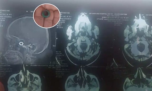 தனியார் டாக்டர்கள் மீண்டும் எக்ஸ்ரே, ஸ்கேன் எடுத்த போது தான் உண்மை தெரிய வந்தது. தையல் போடப்பட்ட இடத்தில் இரும்பு நட்டு இருந்துள்ளது. இதை பார்த்து டாக்டர்களும், கார்த்திகேயனின் உறவினர்களும் அதிர்ச்சியடைந்தனர். பின்னர், தையலை பிரித்து, இரும்பு நட்டை அகற்றி உள்ளனர். எனினும் தொற்று காரணமாக, 2 நாட்கள் கழித்தே மீண்டும் தையல் போட முடியும் என்று டாக்டர்கள் தெரிவித்துள்ளனர்.