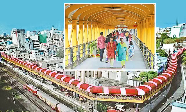 இந்த ஆகாய நடைமேம்பாலத்துக்கு பொதுமக்களும், ரெயில் பயணிகளும், பெண்களும் அமோக வரவேற்பு தெரிவித்துள்ளனர்.