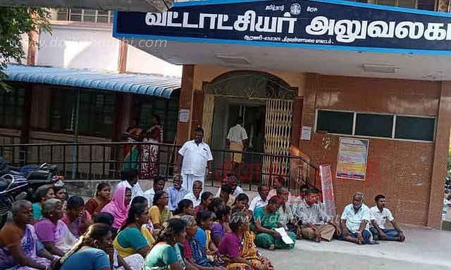இதனால் நீண்ட நேரமாக ஆரணி தாலுகா அலுவலகம் முன்பு காத்திருந்த பொது மக்கள் தரையில் அமர்ந்தும், தாலுகா அலுவலகத்தை முற்றுகையிட்டும் போராட்டம் நடத்தினர். இதுபற்றி தகவல் அறிந்ததும் ஆரணி தாசில்தார் விரைந்து சென்று பேச்சுவார்த்தை நடத்தினார்.