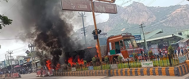 திருச்செங்கோட்டில் கிரானைட் கற்கள் ஏற்றி வந்த லாரி திடீரென நடுரோட்டில் தீப்பிடித்த சம்பவம் அந்த பகுதியில் பரபரப்பை ஏற்படுத்தியது.