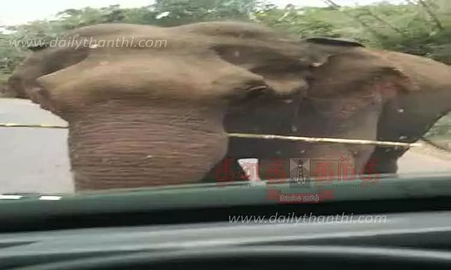 வனப்பகுதிக்குள் இருக்கும் யானைகள் அடிக்கடி தேசிய நெடுஞ்சாலயோரம் வந்து நின்றுவிடுகின்றன.
