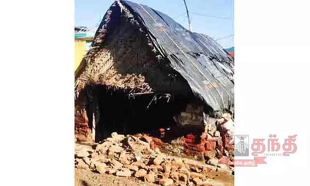 உப்பிலியபுரம் ஒன்றியம் சிக்கத்தம்பூர் மாரியம்மன் கோவில் காலனி வீதியில் வசிப்பவர் சாமிக்கண்ணு வைத்தி. கூலி தொழிலாளி. இவரது தாயார் நாகம்மாள்(வயது 70). இவர்கள் ஒரே கூரை வீட்டில் வசித்து வந்தனர். இந்நிலையில் அப்பகுதியில் பெய்த பலத்த மழையால் நேற்று காலை அந்த கூரை வீட்டின் முன்பக்கமும், பின்பக்கமும் மண்சுவர்கள் இடிந்து விழுந்தன. அந்த வீட்டின் அருகிலேயே புதிய வீடு கட்டும் பணிகள் நடந்து வருவதால், மழை காரணமாக சாமிக்கண்ணுவைத்தி புதிய வீட்டிலேயே தங்கியதாக தெரிகிறது. மேலும் காலையில் மண்சுவர் இடிந்து விழுந்ததால் நாகம்மாள் அதிர்ஷ்டவசமாக உயிர் தப்பினார். இது குறித்து தகவல் அறிந்த வருவாய் ஆய்வாளர் ஜமுனாராணி உள்ளிட்டோர் சென்று சம்பவ இடத்திற்கு பார்வையிட்டனர்.