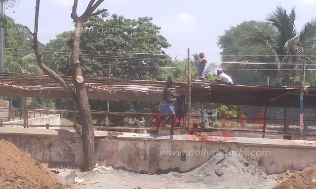 ராகு- கேது பெயர்ச்சியையொட்டி குடவாசல் அருகே உள்ள திருப்பாம்புரம் சேஷபுரீஸ்வரர் கோவிலில் பந்தல் அமைக்கும் பணி தீவிரமாக நடைபெற்றது.
