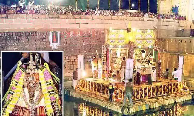 இரவு 9 மணிக்கு தெப்ப மண்டபத்தில் இருந்து ஆளும் பல்லக்கில் புறப்பட்டு திருவீதி வலம் வந்து, இரவு 10.15 மணி அளவில் மூலஸ்தானம் சேர்ந்தார். இதில் திரளான பக்தர்கள் கலந்து கொண்டு தரிசனம் செய்தனர். இதனை தொடர்ந்து இன்று (சனிக்கிழமை) மாலை 4.30 மணிக்கு தீர்த்தவாரி கண்டருளி தெப்ப மண்டபம் சேருகிறார். அங்கு திருமஞ்சனம் நடக்கிறது. பின்னர் இரவு 9 மணிக்கு ஆளும் பல்லக்கில் தாயார் புறப்பட்டு பந்தக்காட்சியுடன் வீதி உலா வந்து மண்டபம் சேருகிறார். இரவு 10.15 மணிக்கு மூலஸ்தானம் சேருகிறார்.