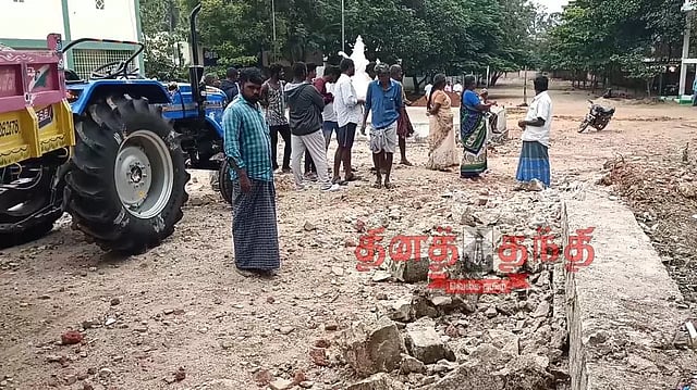 ஆனால் பாதியிலேயே நின்ற கோவில் கட்டும் பணி தற்போது வரை முடிவடையவில்லை. இந்த நிலையில் நேற்று திடீரென ஊராட்சி மன்ற தலைவர் சார்பில் கோவில் கட்ட தொடங்கிய இடத்தில் உள்ள கருங்கற்களை இடித்து டிராக்டரில் ஏற்றிச் சென்றுள்ளனர். பொதுமக்கள் அதற்கு எதிர்ப்பு தெரிவித்து முற்றுகையிட்டதால் பரபரப்பு ஏற்பட்டது.