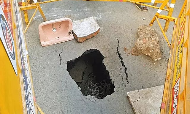 மேலும் மாநகராட்சி ஊழியர்கள் பள்ளத்தை உடனடியாக சரிசெய்யும் பணியில் ஈடுபட்டனர். கழிவுநீர் செல்லும் குழாயில் ஏற்பட்ட உடைப்பு காரணமாக மண் அரிப்பு ஏற்பட்டு சாலையில் பள்ளம் ஏற்பட்டதாக அதிகாரிகள் தெரிவித்தனர். சாலையில் பள்ளம் ஏற்பட்ட நேரத்தில் அதிர்ஷ்டவசமாக எந்த வாகனமும் அந்த வழியாக செல்லாததால் பெரும் விபத்து தவிர்க்கப்பட்டது. எப்போதும் போக்குவரத்து நெரிசல் மிகுந்த சாலையில் திடீரென பள்ளம் ஏற்பட்டதால் அங்கு பரபரப்பு ஏற்பட்டது.