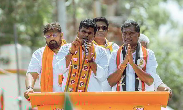தமிழக பாஜக முன்னாள் தலைவர் அண்ணாமலை சிவகங்கை மாவட்டத்தில் உள்ள காரைக்குடி தொகுதியில் அமமுக வேட்பாளர் தேர்போகி பாண்டியை ஆதரித்து பிரசாரத்தில் ஈடுபட்டார். அப்போது அவர் பேசியதாவது:-