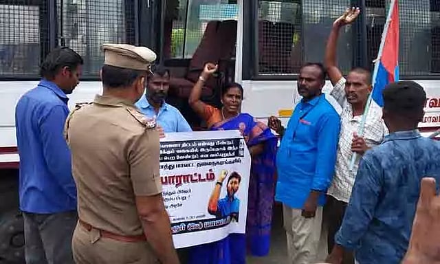 மத்திய அரசின் விஸ்வகர்மா யோஜனா திட்டம் என்பது மீண்டும் நாட்டில் குலத்தொழிலை ஊக்குவிக்கும் வகையில் இருப்பதால் இந்த திட்டத்தை மத்திய அரசு திரும்ப பெற வேண்டும் என வலியுறுத்தி ஆதித்தமிழர் கட்சி சார்பில் ரெயில் மறியல் போராட்டம் நடத்துவதாக அறிவித்திருந்தனர். இதனையடுத்து முன்னெச்சரிக்கை நடவடிக்கையாக நேற்று கரூர் ரெயில் நிலையத்தில் போலீசார் பாதுகாப்பு பணியில் ஈடுபட்டிருந்தனர். இதையடுத்து நேற்று மாவட்ட செயலாளர் ராஜூவ்காந்தி தலைமையில் ஆதித்தமிழர் கட்சியினர் கரூர் ரெயில் நிலைய வளாகத்தில் கோரிக்கைகளை வலியுறுத்தி மத்திய அரசுக்கு எதிராக கோஷங்களை எழுப்பி ஆர்ப்பாட்டத்தில் ஈடுபட்டனர். அப்போது அங்கு பாதுகாப்பு பணியில் இருந்த போலீசார் ஆாப்பாட்டத்தில் ஈடுபட்ட அக்கட்சியை சேர்ந்த ஒரு பெண் உள்பட 6 பேரை கைது செய்தனர்.