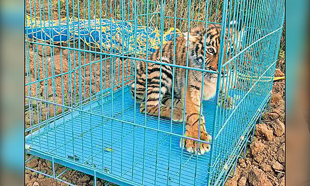 அப்போது அந்த பகுதியில் சுற்றித்திரிந்த, பிறந்து 5 மாதங்களே ஆன பெண் புலி குட்டியை வனத்துறையினர் மீட்டனர். தற்போது டாக்டரின் கண்காணிப்பில் கூண்டுக்குள் வைத்து புலி குட்டி பராமரிக்கப்பட்டு வருகிறது. மேலும் மற்றொரு புலி குட்டியை வனத்துறையினர் தேடி வருகின்றனர்.