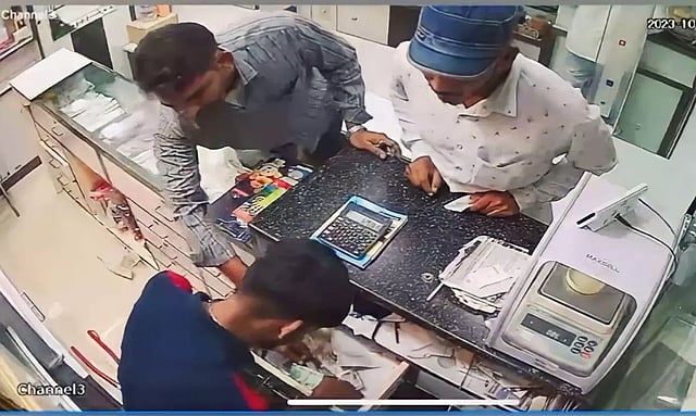 இந்த நிலையில், கடைக்கு திரும்பி வந்த திலீப் குமார் கல்லாப்பெட்டியை பார்த்த போது, அதில் வைத்திருந்த 5 பவுன் நகை இல்லாததை கண்டு அதிர்ச்சி அடைந்தார். தொடர்ந்து கண்காணிப்பு கேமராவை ஆய்வு செய்த போது கடைக்கு வந்த 2 பேர் நகை வாங்குவது போல் நடித்து, நூதன முறையில் 5 பவுன் நகையை அபேஸ் செய்தது தெரிந்தது.