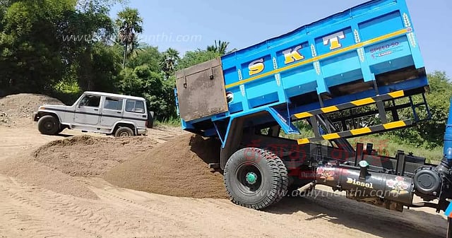 மணல் கடத்தலில் ஈடுபட்ட டிப்பர் லாரியை கோட்டாட்சியர் பறிமுதல் செய்தார்.