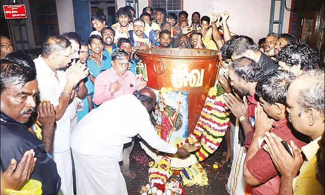 திருவண்ணாமலை அருணாசலேஸ்வரர் கோவிலில் கார்த்திகை தீபத்திருவிழா கடந்த 4-ந் தேதி கொடியேற்றத்துடன் தொடங்கி நடைபெற்று வருகிறது. இவ்விழாவின் 10-ம் நாள் விழாவான இன்று (வெள்ளிக்கிழமை) அதிகாலை 4 மணிக்கு கோவிலில் பரணி தீபம் ஏற்றப்பட்டது. இதில் ஆயிரக்கணக்கான பக்தர்கள் கலந்துகொண்டனர். இன்று மாலை 6 மணிக்கு கோவிலுக்கு பின்புறம் உள்ள 2 ஆயிரத்து 668 அடி உயரமுள்ள மலை உச்சியில் மகா தீபம் ஏற்றப்பட உள்ளது.