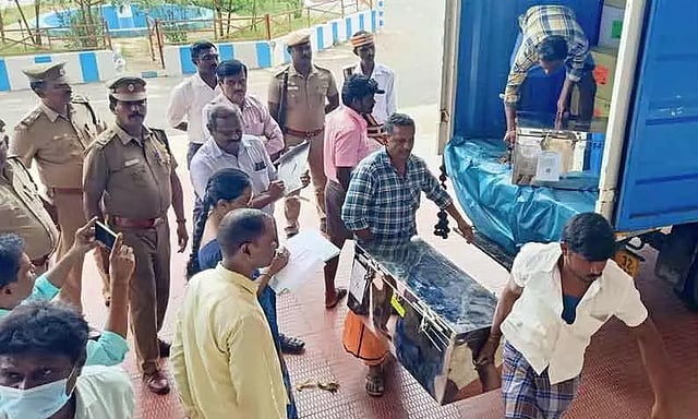 இந்த தேர்வுகளுக்கான வினாத்தாள்கள் நேற்று பலத்த பாதுகாப்புடன் தேனி மாவட்ட கலெக்டர் அலுவலகத்துக்கு கொண்டு வரப்பட்டன. மாவட்ட வருவாய் அலுவலர் சுப்பிரமணியன், மாவட்ட கலெக்டரின் நேர்முக உதவியாளர் (பொது) அன்பழகன் ஆகியோர் முன்னிலையில் மினிவேனில் இருந்து வினாத்தாள்கள் இறக்கப்பட்டு மாவட்ட கலெக்டர் அலுவலகத்தில் உள்ள பாதுகாப்பு அறையில் வைக்கப்பட்டன. அந்த அறைக்கு சீல் வைக்கப்பட்டு, துப்பாக்கி ஏந்திய போலீசார் பாதுகாப்பு பணியில் ஈடுபடுத்தப்பட்டனர்.
