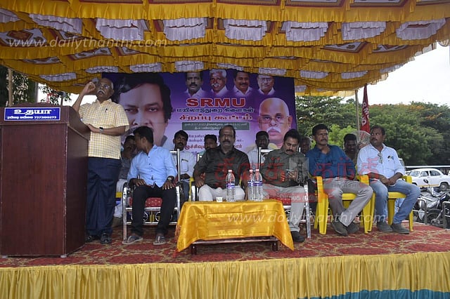 மயிலாடுதுறை ரெயில் நிலையத்தில் எஸ்.ஆர்.எம்.யூ. கிளை சிறப்பு கூட்டம் நடந்தது. கூட்டத்துக்கு கோட்ட தலைவர் மணிவண்ணன் தலைமை தாங்கினார். கோட்ட செயலாளர் வீரசேகரன் முன்னிலை வகித்தார். இதில் மத்திய சங்க தலைவர் ராஜாஸ்ரீதர் கலந்து கொண்டு பேசினார். அப்போது அவர் கூறியதாவது:-