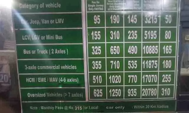 அதன்படி கார், ஜீப், வேன் (லைட்) உள்ளிட்ட வாகனங்களுக்கு பழைய கட்டணம் ரூ.95-க்கு பதிலாக ரூ.5 உயர்ந்து ரூ.100 புதிய கட்டணமாகவும், எல்.சி.வி., எல்.ஜி.வி., மினி பஸ் உள்ளிட்ட வாகனங்களுக்கு பழைய கட்டணமாக ரூ.155-ம் தற்போது ரூ.10 உயர்ந்து ரூ.165 புதிய கட்டணமாகவும், பஸ், டிரக் (2 ஆக்சில்) உள்ளிட்ட வாகனங்களுக்கு பழைய கட்டணம் ரூ.325-லிருந்து புதிய கட்டணம் ரூ.345 ஆகவும், 3 ஆக்சில் கமர்சியல் வாகனங்களின் பழைய கட்டணம் ரூ.355-லிருந்து புதிய கட்டணம் ரூ.375 ஆகவும், எச்.சி.எம். (4-6 ஆக்சில்) வாகனங்களுக்கு பழைய கட்டணம் ரூ.510-லிருந்து தற்போது ரூ.540 ஆகவும், ஓவர்சைஸ் வாகனங்களுக்கான பழைய கட்டணம் ரூ.625-லிருந்து தற்போது ரூ.655 ஆகவும் உயர்த்தி சுங்கச்சாவடி நிர்வாகம் அறிவித்துள்ளது. இந்த கட்டண உயர்வானது இன்று நள்ளிரவு முதல் அமலுக்கு வரும் என்பது குறிப்பிடத்தக்கது. இதனால் வாகன ஓட்டிகள் கவலை அடைந்து உள்ளனர்.