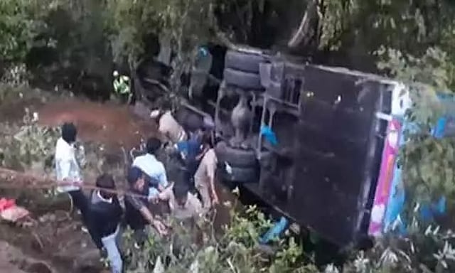 தென்காசியில் இருந்து 54 பயணிகளுடன் ஊட்டிக்குச் சென்ற சுற்றுலா பேருந்து, நீலகிரி மாவட்டம் குன்னூர்-மேட்டுப்பாளையம் மலைப்பாதையில் மரப்பாலம் அருகே வந்தபோது ஓட்டுநரின் கட்டுப்பாட்டை இழந்து பள்ளத்தில் கவிழ்ந்து விபத்தில் சிக்கியது.