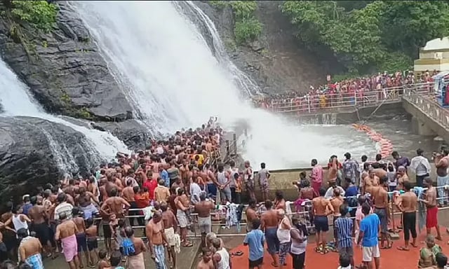 அதன்படி, குற்றாலம் மெயின் அருவியில் வெள்ளப்பெருக்கு குறைந்ததால் இன்று காலை முதல் சுற்றுலா பயணிகள் குளிப்பதற்கு அனுமதிக்கப்பட்டனர். பாதுகாப்பு கருதி அருவியின் ஒரு பகுதியில் மட்டும் குளிக்க அனுமதி வழங்கப்பட்டுள்ளது. அருவியில் ஆண்கள், பெண்கள் நீண்ட வரிசையில் நின்று குளித்துச் செல்கின்றனர். விடுமுறை தினம் என்பதால் சுற்றுலா பயணிகள் அதிகளவில் குவிந்து உற்சாக குளியல் போட்டு வருகின்றனர்.