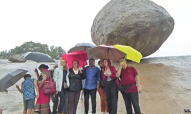 நேற்று மாமல்லபுரத்தில் குளிர்ச்சியான, இதமான, தட்பவெப்ப சூழல் நிலவியதால் மகிழ்ச்சியடைந்த அவர்கள் வெண்ணை உருண்டைக்கல் முன்பு அதனை கைகளால் தாங்கி பிடிப்பது போலவும், தள்ளுவது போலவும் பல்வேறு கோணங்களில் புகைப்படம் எடுத்து ரசித்ததையும் காண முடிந்தது.