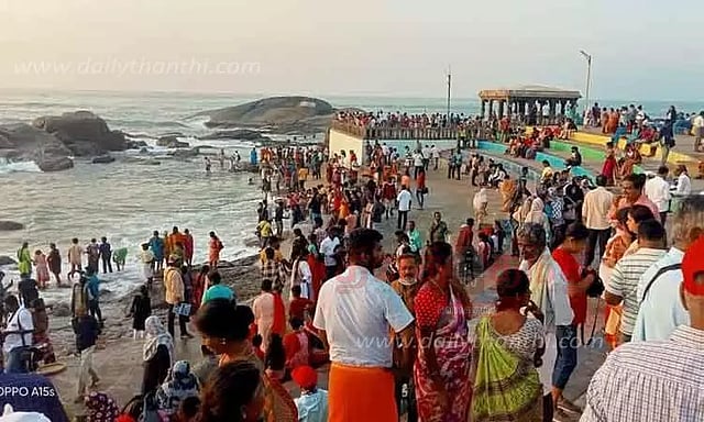 இந்தநிலையில் நேற்று காலையில் இருந்தே கன்னியாகுமரியில் ஆயிரக்கணக்கான சுற்றுலா பயணிகள் குவிய தொடங்கினார்கள். அவர்கள் முக்கடலும் சங்கமிக்கும் திரிவேணி சங்கமம் கடற்கரை பகுதியில் அதிகாலையில் சூரிய உதய காட்சியை பார்த்து ரசித்தனர்.