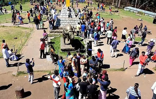 சுமார் 2 கிலோமீட்டர் தூரத்துக்கு நூற்றுக்கணக்கான வாகனங்கள், சாலையின் இருபுறத்திலும் அணி வகுத்தபடி ஊர்ந்து சென்றன. இதனால் சுற்றுலா பயணிகள் தாங்கள் செல்லவேண்டிய இடங்களுக்கு செல்ல முடியாமல் தவித்தனர்.