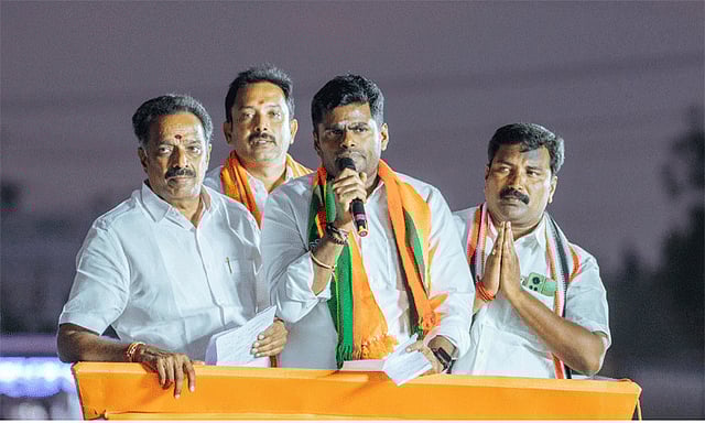 அரவக்குறிச்சி மக்கள் எதிர்கொள்ளும் பிரச்சினை குறித்து நன்கு அறிந்தவன் நான். கடந்த 5 ஆண்டுகளாக, தமிழக மக்களுக்கு எந்த நலன்களும் கிடைக்கவில்லை. அதனால் தான், இந்தமுறை தமிழகமே தேசிய ஜனநாயக கூட்டணியின் பக்கம் நிற்கிறது. பொதுமக்களை பட்டிக்குள் அடைத்து வைத்து ஒரு மோசமான அரசியலை முன்னெடுத்தவர் செந்தில் பாலாஜி. ஊழல் புகாரில், 400 நாட்களுக்கும் மேலாக சிறைக்கு சென்ற ஒருவரால் மக்களுக்கு என்ன செய்ய முடியும்?