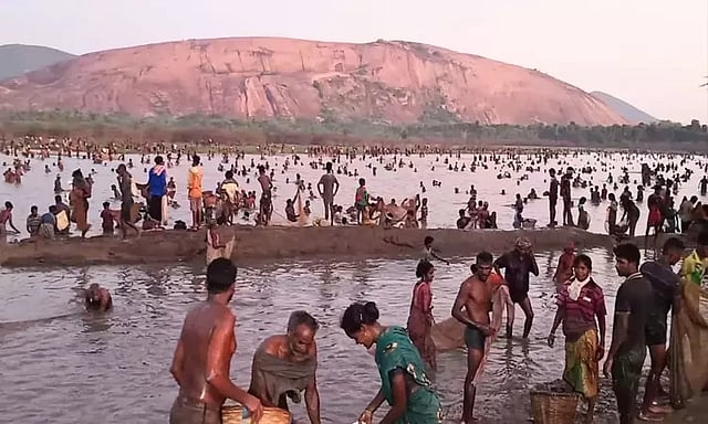 இந்த ஆண்டுக்கான மீன்பிடி திருவிழா இன்று அறிவிக்கப்பட்டிருந்தது. அதனால் மேலூர், மேலவளவு, கொட்டாம்பட்டி பகுதிகளிலிருந்து ஏராளமான கிராம மக்கள் நள்ளிரவு முதலே இங்கு வந்திருந்தனர்.