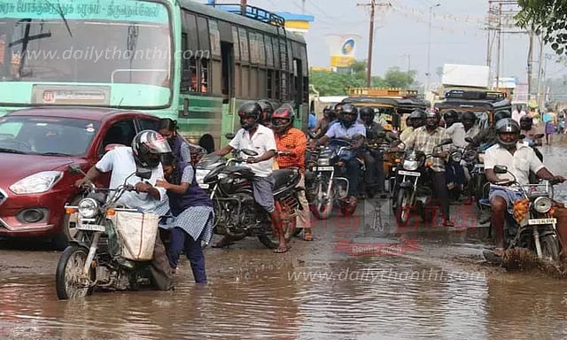 இதற்கிடையே காலை, மாலை நேரத்தில் பள்ளி மாணவர்கள் மற்றும் பொதுமக்கள் பரபரப்பாக சென்று வரும் நிலையில், ஆர்ச் சாலை அருகே மிகப்பெரிய பள்ளம் ஏற்பட்டுள்ளது. தற்போது பெய்த மழையால் அதில் தண்ணீர் தேங்கி கிடப்பதால் பள்ளம் இருப்பது தெரியாமல் வாகன ஓட்டிகள் அச்சத்துடன் செல்கின்றனர். இதனால் போக்குவரத்து பெரிதும் பாதிக்கப்படுகிறது.