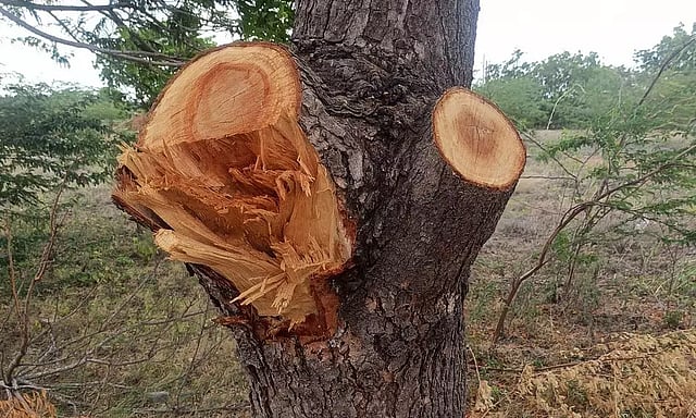 பல்லடம் அருகே மாதப்பூர் ஊராட்சியில் வி.ஐ.பி. நகர் அமைந்துள்ளது. அங்கு சுமார் 10 வீடுகள் மட்டுமே கட்டப்பட்டுள்ளது. இந்த நிலையில் அங்கு குடியிருப்பு பகுதியில் சுமார் 500-க்கும் மேற்பட்ட மரங்கள் வளர்க்கப்பட்டு வருகிறது. இந்த நிலையில் அங்கு நன்கு வளர்ந்திருந்த 8 வேப்ப மரங்களை யாரோ முழுமையாக வெட்டி உள்ளனர். மேலும் அங்கிருந்த சில மரங்களின் பெரிய, பெரிய கிளைகளையும் வெட்டி கடத்திச் சென்றுள்ளனர். இதுகுறித்த புகாரின் பேரில் பல்லடம் போலீசார் விசாரணை மேற்கொண்டு வருகின்றனர்.