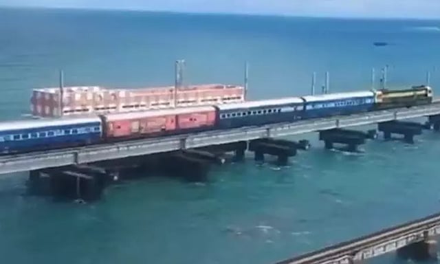 ராமநாதபுரம் மாவட்டம் பாம்பன் கடலின் நடுவே ரூ.545 கோடியில் புதிய ரெயில் பாலம் கட்டி முடிக்கப்பட்டுள்ளது. அதுபோல் இந்த பாலத்தின் மையப் பகுதியில் சுமார் 77 மீட்டர் நீளமும், 650 டன் எடையும் கொண்ட செங்குத்து வடிவில் திறந்து மூடும் வகையிலான தூக்குப்பாலம் அமைக்கப்பட்டு உள்ளது. புதிய பாலத்தில் பல்வேறு கட்ட சோதனை நடைபெற்று வருகிறது.
