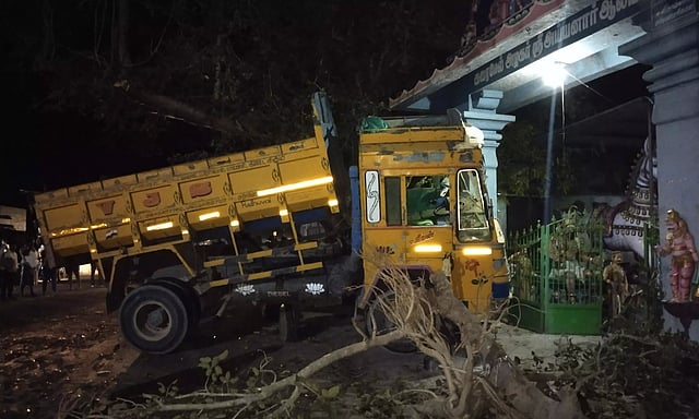 திருவெண்ணெய்நல்லூர் அருகே உள்ள இளந்துறை கிராமத்தை சேர்ந்தவர் புருஷோத்தமன் (வயது40). விவசாயி. இவர் தனது டிராக்டரை கலப்பையுடன் திருவெண்ணெய்நல்லூர் அய்யனார் கோவில் முன்பு நிறுத்தினார். பின்னர் டிராக்டருக்கு பூஜை செய்து கொண்டிருந்தார். அப்போது அந்த வழியாக வந்த லாரி கோவில் அருகே இருந்த ஆலமரத்தில் மோதி சென்று அங்கு நின்ற புருஷோத்தமனின் டிராக்டர் மீது மோதியது. மேலும் அந்த லாரி அய்யனார் கோவில் நுழைவு வாயில் மீது மோதி நின்றது. இதில் நுழைவு வாயில் சேதமடைந்தது. இந்த விபத்தில் லாரியின் அடிப்பகுதியில் டிராக்டர் சிக்கி பலத்த சேதமடைந்தது. இது குறித்து திருவெண்ணெய்நல்லூர் போலீசார் விசாரணை நடத்தி வருகின்றனர்.