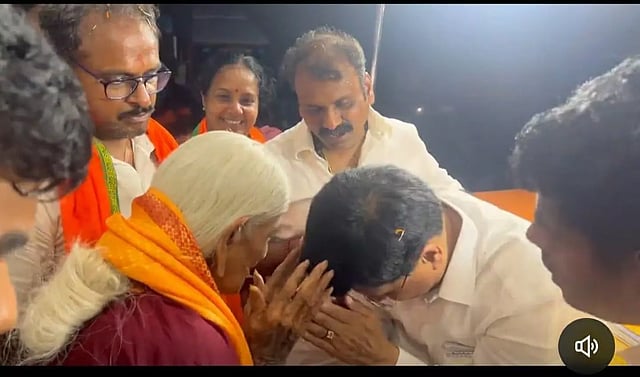 இந்த நிலையில் பாதயாத்திரையில் அண்ணாமலையை சந்திக்க இயற்கை முறையில் விவசாயம் செய்து வரும் மேட்டுப்பாளையத்தை சேர்ந்த பத்மஸ்ரீ விருது பெற்ற 108 வயதான பாப்பம்மாள் பாட்டி வந்திருந்தார். இதனை அறிந்த அண்ணாமலை பாப்பம்மாள் பாட்டியின் காலில் விழுந்து ஆசி பெற்றதுடன், அவருக்கு பொன்னாட அணிவித்து கவுரவித்தார். இதைத் தொடர்ந்து மத்திய மந்திரிகள் பியூஸ் கோயல், எல்.முருகன் ஆகியோரும் பாப்பம்மாள் பாட்டிக்கு பொன்னாடை அணிவித்து, அவரிடம் ஆசி பெற்று கொண்டனர்.